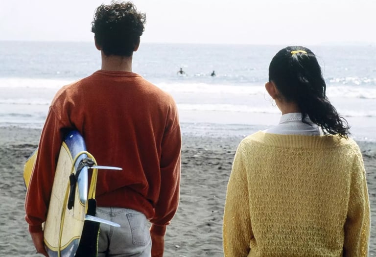 Dans une petite ville du Japon bordée par la mer, une planche de surf bazardée dans une poubelle est trouvée par Shigeru, l’un des personnages de A scene at the sea . Ce dernier se met alors à délaisser son travail d’éboueur pour se consacrer à sa nouvelle passion, sous le regard fier et quelque peu amusé de sa petite amie, Takako.