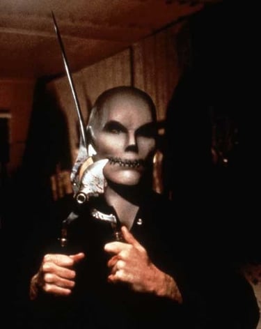 Et bien entendu, on a notre lot de sang, de couteaux, de vieux manoirs, de feu, d’égorgés, de monstres. Sans se moquer de l’horreur exagérée et gratuite du slasher gore des années 1990, Kimble Rendall ne recherche pas la pure angoisse, mais propose une mise à distance comique qui respecte l’intégrité du genre, en entrecroisant fiction et réalité : quatorze ans auparavant, une réalisatrice a été sauvagement assassinée par l’acteur qui jouait le monstre, en plein tournage de son film d’horreur. Depuis, à chaque revisionnage de projet interrompu, des meurtres sanglants sont commis. Raffy et son équipe sont bien décidés à terminer le film, réveillant ainsi l’antagoniste principal qui erre dans la nature, commettant dans l’ombre les meurtres les plus infâmes.