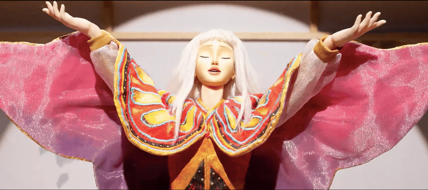 Esthétiquement, Tiago choisit d’avoir 2 dimensions dans Kabuki, le début du film qui s’ouvre sur le passé du personnage ainsi que les loups qui l’attaquent plus tard sont en 2D. Le reste, au présent, est du stop motion.