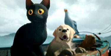 C’est la plus grande force de Flow : son rejet de l’anthropomorphisme animalier. Pourquoi forcer nos expressions humaines dans un monde rempli d'instinct et de non-verbal ? On comprend ces animaux, leurs dialogues sont clairs et leurs émotions palpables, tout ça grâce à un travail d'animation hors du commun, à une mise en scène intelligente et à des musiques merveilleuses. Gints Zilbalodis nous offre un moment de paix, d’introspection et d’émerveillement digne du royaume inondé de Ponyo sur la falaise. Une bulle calme et idyllique aux portes de la fin du monde. Un questionnement philosophique sur notre place sur Terre et sur les traces que nous laisserons derrière nous. Et tout ça… grâce à un chat, un labrador, un capybara, un lémurien, et un messager sagittaire, ce grand rapace africain. Une véritable société muette.