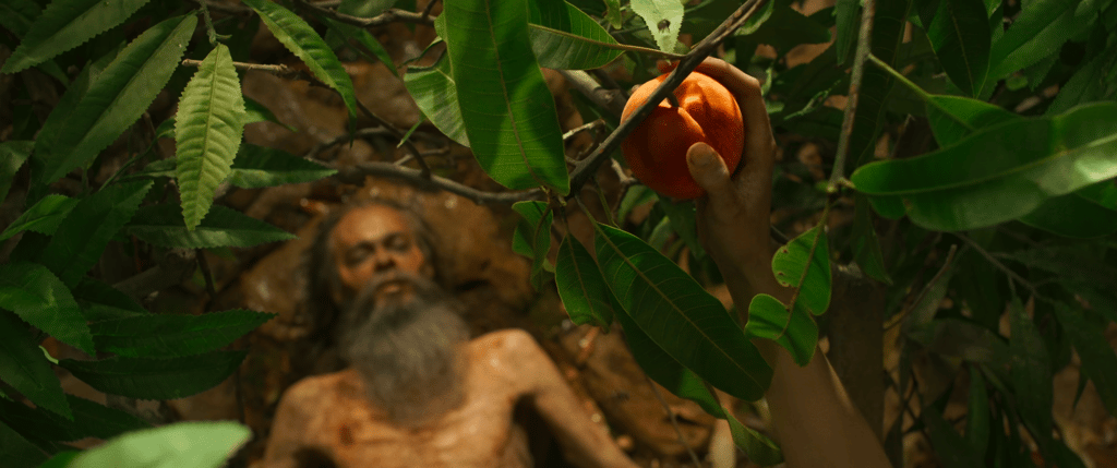 Cela jusqu’à rendre ce procédé sous-jacent visible aux yeux du spectateur lambda : Fury Road est à sa sortie résumé comme un aller-retour par ses détracteurs. Les trois étapes du « voyage du héros », son départ, son initiation et son retour, n’y sont nullement dissimulées. Si sa structure en cinq chapitres peut paraitre moins évidente, Furiosa continue de dépeindre une héroïne pleinement campbellienne. Elle est arrachée à sa patrie, éprouve la brutalité du monde extérieur, et l’assimile afin de renaître. Le fruit qu’elle cherchait tant à obtenir lors de l’introduction ne sera véritablement sien qu’au terme de son épopée, car il puise ses nutriments dans les entrailles de son ultime épreuve : Dementus.