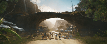 Fury Road explorait déjà pleinement à son échelle le rapport à la création artistique dans un monde ravagé. Le moindre objet, devenu vestige, est exposé sur ses vêtements ou sa voiture, rendus à la fois musée et vitrine. Comme Miller le précise : « Ce n’est pas parce que c’est un monde appauvri que les gens cessent de créer de belles choses » [5]. C’est dans l’inutile que réside le luxe, une façon de faire survivre la beauté à travers l’art de l’objet trouvé - une humanité là où tout n’est que machine. Le fait de couvrir une telle période dans Furiosa est par conséquent un bonheur pour l’architecte visuel qu’est Miller qui, particulièrement à travers ses décors, costumes et véhicules évoluant au fil du film, peut s’adonner à une narration environnementale.