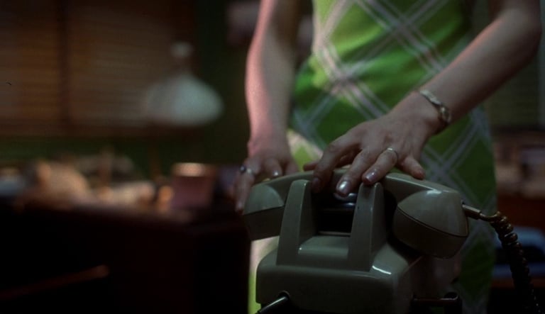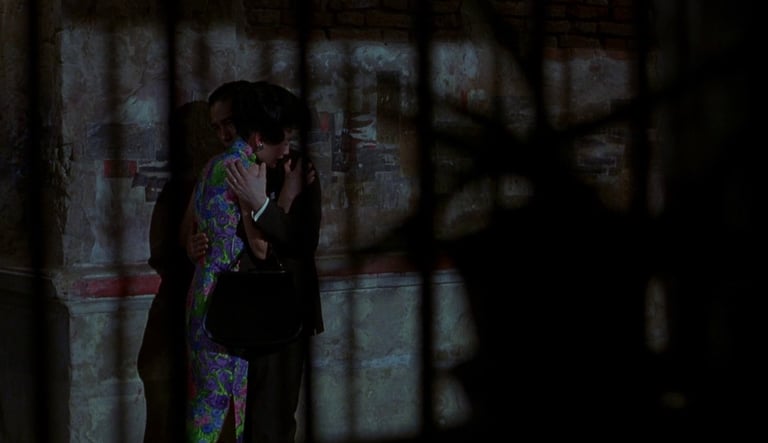 Au niveau colorimétrique, Wong Kar Wai utilise des teintes chaudes (rouge, jaune, vert) qui accentuent la sensualité et la nostalgie. Les robes de Maggie Cheung sont un élément central du film, soulignant l’évolution de son personnage (elle portera 20 robes différentes). Wong Kar Wai est un poète de l’image, il a une utilisation marquée des couleurs, qui sont souvent des couleurs saturées et vibrantes, évoquant la passion, la nostalgie et la solitude. Il y a aussi ses jeux de lumières et de néons qui créent une atmosphère intime et mélancolique, renforçant l’intensité des émotions des personnages.