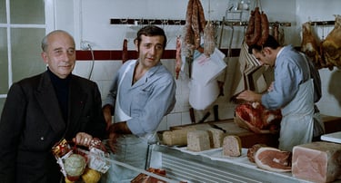Le Boucher s’ouvre sur la célébration d’un mariage au cours duquel une institutrice et un vétéran se lient d’amitié. Après 15 ans de service militaire, l’homme qui se fait appeler Popaul revient dans ce village tranquille du Périgord, décidé à reprendre en main la boucherie familiale. Ses tournures de langage récurrentes reviennent à son vécu de guerre, gimmick fatiguée de l’ancien combattant. Il évoque les images du sang qu’il a vu couler, rapporte qu’elles le ramènent sans cesse aux cadavres pilés d’Algérie et d’Indochine.