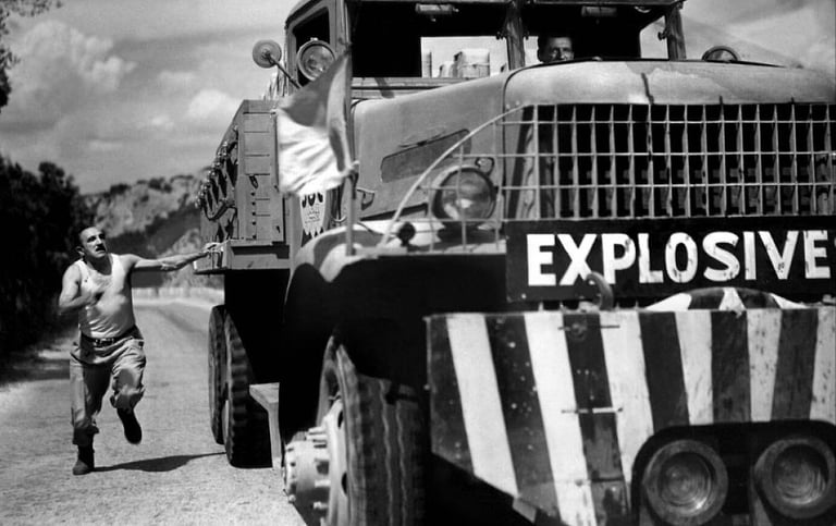 Leur mission est terrifiante : transporter plusieurs tonnes de nitroglycérine par camion jusqu'au site de l'incendie. Ce liquide hautement explosif détonne à la moindre secousse, ou si la température des jerricanes dépasse 80°C (dans ce désert, un arrêt de quelques minutes suffit). C'est du suicide. Mais avec 2000 dollars à la clé, ils n'hésitent pas une seconde.
