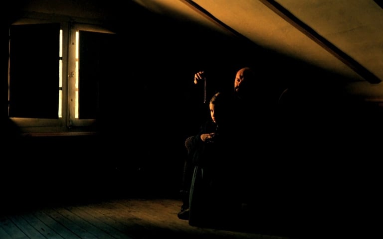 Le film s’ouvre d’une manière qu’Erice réutilise par la suite : la lumière se lève doucement sur une pièce qui semble jusque-là avoir été figée dans le temps et l’obscurité, puis les personnages s’y mettent en mouvement. Estrella a quinze ans. Elle est réveillée par des paroles échangées derrière la porte. C’est à la découverte du pendule d’Agustin sous son oreiller qu’elle comprend que son père a disparu.