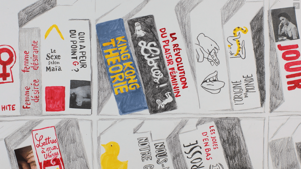 Car si le film a une forte autonomie esthétique, il a aussi son propre ton. Il emprunte à un imaginaire (ou plutôt un imagier) de la sexualité bien concret qu’il cherche à tourner en dérision en même temps qu’il le dénonce. Les références visuelles, textuelles, archivistes sont nombreuses : extraits de vieux films, collages féministes, livres et podcasts, publicités, images d’archives, affiches militantes… L’univers visuel se nourrit de l’esprit des années 70 et 80, période dans laquelle les femmes qui témoignent ont grandi, marquée par un contexte politique et notamment militant. En plus de ça, de nombreuses peintures et sculptures baroques sont (re)dessinées, animées d'un regard neuf, pour mettre en lumière et renverser un héritage culturel iconographique bien ancré dans la représentation des femmes et de la sexualité.