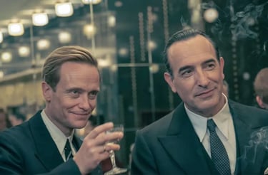 Giannoli interroge aussi la place de l’art en temps de crise. La relation entre Corinne et Léonide Moguy, cinéaste qui l’a révélée, se dégrade à mesure que les choix du père deviennent moralement insupportables pour Moguy. Le film rappelle ainsi que le cinéma ne peut se soustraire au politique, et qu’il constitue, en lui-même, un acte de mémoire. Sur le plan formel, le réalisateur fait le choix d’une mise en scène volontairement sobre, presque austère. Ce parti pris renforce la gravité du propos mais confère à l’ensemble une certaine rigidité : tout est très scolaire et on ne peut s’empêcher de se dire que le sujet a complètement pris le pas sur le geste artistique. La photographie, dominée par des teintes gris-bleu, épouse la noirceur du récit, contrastant avec les éclats artificiels des soirées mondaines. Dans cette France, les ombres finissent naturellement par l’emporter sur les rares rayons de lumière. Concernant le rythme, il est complètement maîtrisé, les 3 heures de métrage passent sans problème et on ne perçoit pas de scènes de remplissage, tout a sa place dans le récit.