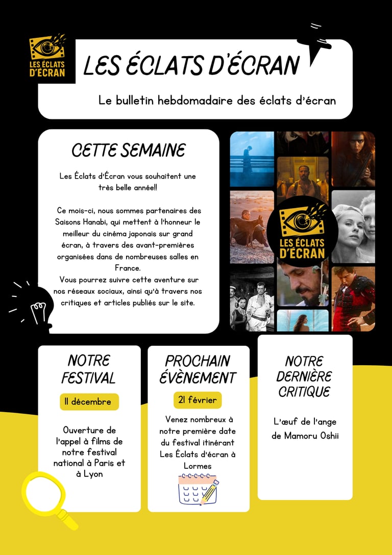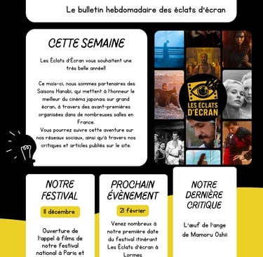 Chaque semaine, Les Éclats d’Écran vous donnent rendez-vous dans leur newsletter pour un panorama de l'actualité de l'association.