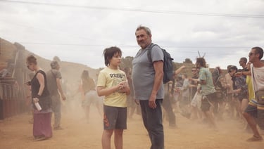 La forme épouse alors celle de la musique techno. Le film se construit sur un même temps long, avec des variations infimes, des virages soudains, des drops qui relancent le mouvement amorcé. La dramaturgie est faite de virages, de retours, d’éruptions. Et surtout, il filme la vibration. Vibration des basses, matérialisées par une scène fascinante où une teufeuse montre à Sergi Lopez, réticent, les variations de la membrane d’un caisson. Ce qui était jusque-là une transcendance sonore, mystique, devient visible et concrète. Le spectateur accède à sa matérialisation. Vibration des moteurs aussi, vibration des vapeurs chauffées par le soleil, vibration jusque dans les silences qui tremblent, jamais vraiment silencieux sur cette route des sables. Oliver Laxe réussit quelque chose d’unique : incarner physiquement une musique dans le cadre. Kubrick l’avait fait avant lui avec la musique classique - Laxe s’inscrit dans la même lignée.